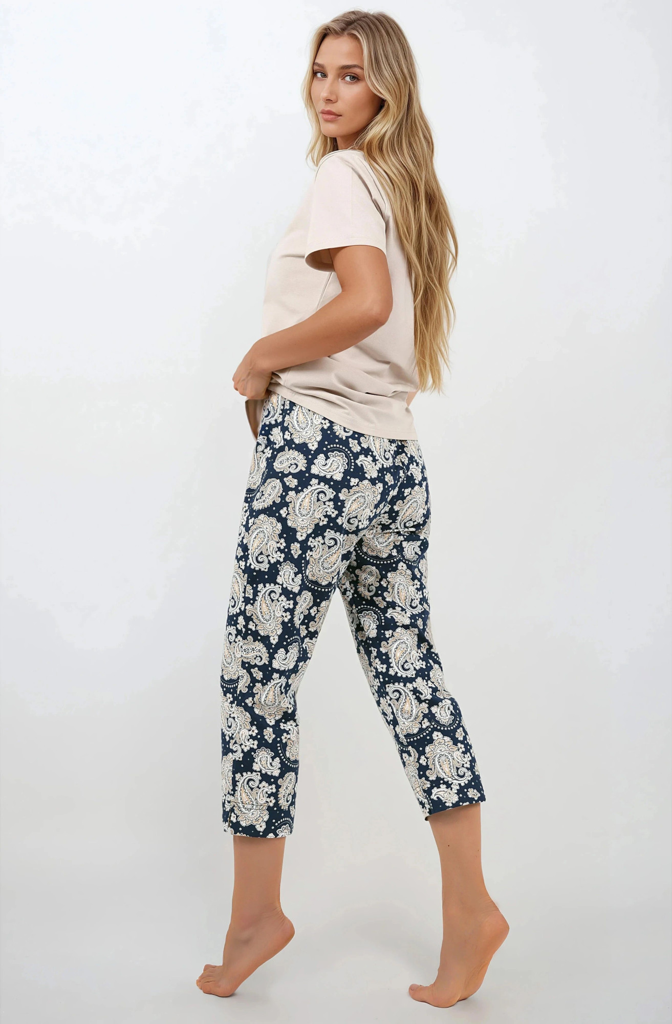 Tabuľka veľkostí v cm. (Tabuľka veľkostí v cm)S (36)M (38)L (40)XL (42)XXL (44)XXXL (46) Prsia82-8687-9293-9899-104105-110111-116 Pás63-6868-7373-7878-8383-8888-93 Strany85-9091-9697-102103-108109-114115-120 Polokruhový výstrih Elegantný dizajn Hypoalergénny Voľný, pohodlný strih Nesušte v sušičke Umožňuje pokožke dýchať Možno prať pri 30 °C Vyrobené v leštiarni Rovné nohavice Krátke rukávy Nohavice 7/8 Nohavice bez vreciek Elastický pás Vyrobené z prírodných materiálov Vysokokvalitná tkanina s potlačou Navrhnuté a ušité v Poľsku Dvojdielna súprava Úhľadný strih Spodný diel - 100 % bavlna Vrchná časť - 96 % bavlna Vrchná časť - elastan: 4 %