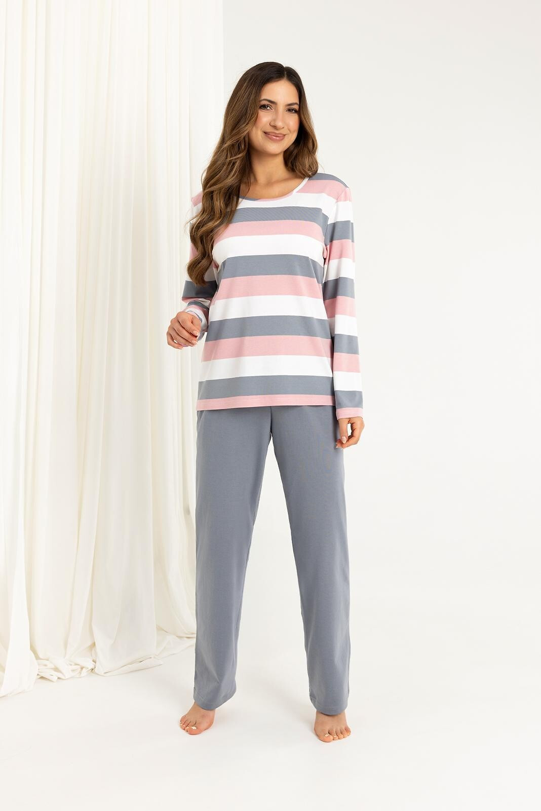 Dámske bavlnené pyžamo - tričko s dlhým rukávom - pruhovaný vzor - polkruhový výstrih - pevné nohavice s dlhými nohavicami - pohodlný elastický pás podšitý bavlnou Zloženie: 96 % bavlna, 4 % elastan