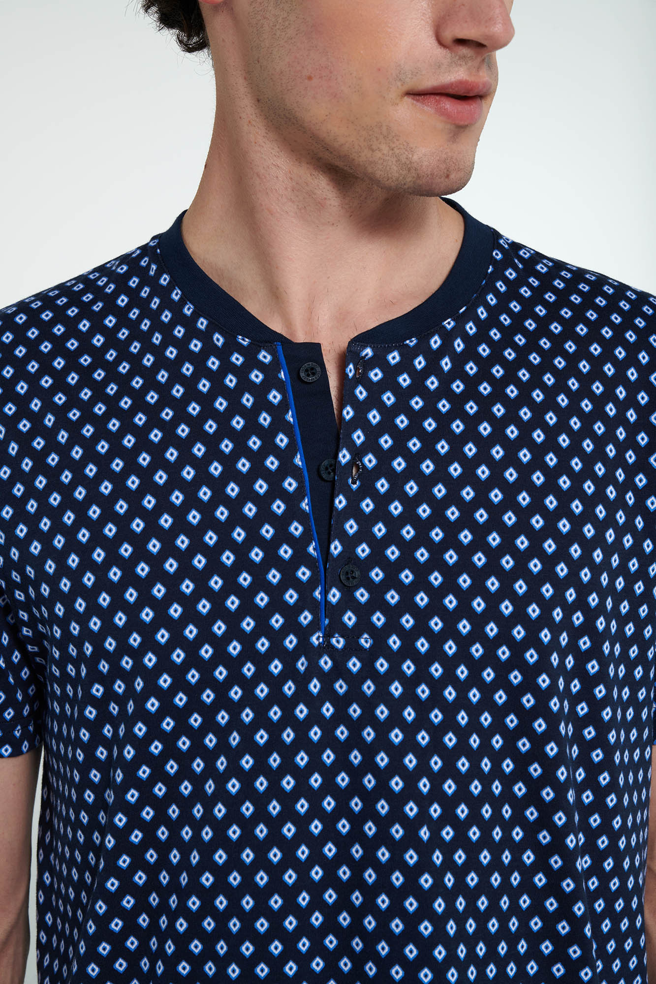 100% bavlna S. Jersey Model: výška 185 cm, veľkosť. Pánske pyžamo s gombíkovou légou a hladkými, krátkymi nohavicami. Klasický dizajn, ktorý vás bude tešiť dlhé roky.