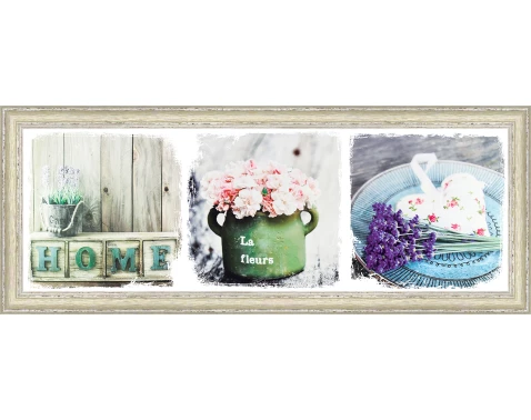 Zarámovaný obraz v provence štýle tlačený na tapete rozžiari Váš interiér. Vyzdobte si miestnosť aj ďalšími motívmi.