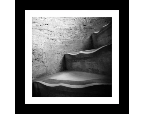 Zarámovaný obraz v čiernom ráme s motívom schodov. Čiernobiele prevedenie vytvára elegantnú atmosféru. Rozmer 20x20 cm.