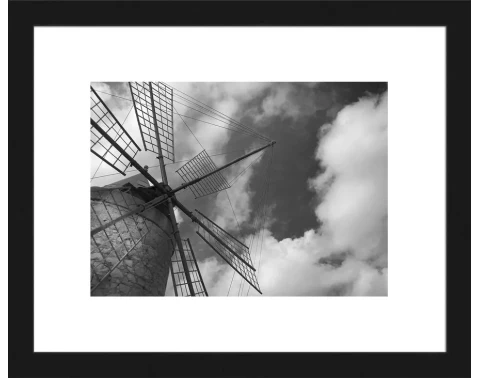 Zarámovaný obraz v drevenom čiernom ráme s motívom veterného mlynu je vyrobený technikou fototlače. Jednoduché, ale elegantné čiernobiele prevedenie obrazu dodá Vášmu interiéru výnimočnú atmosféru. Rozmer 20x25 cm.