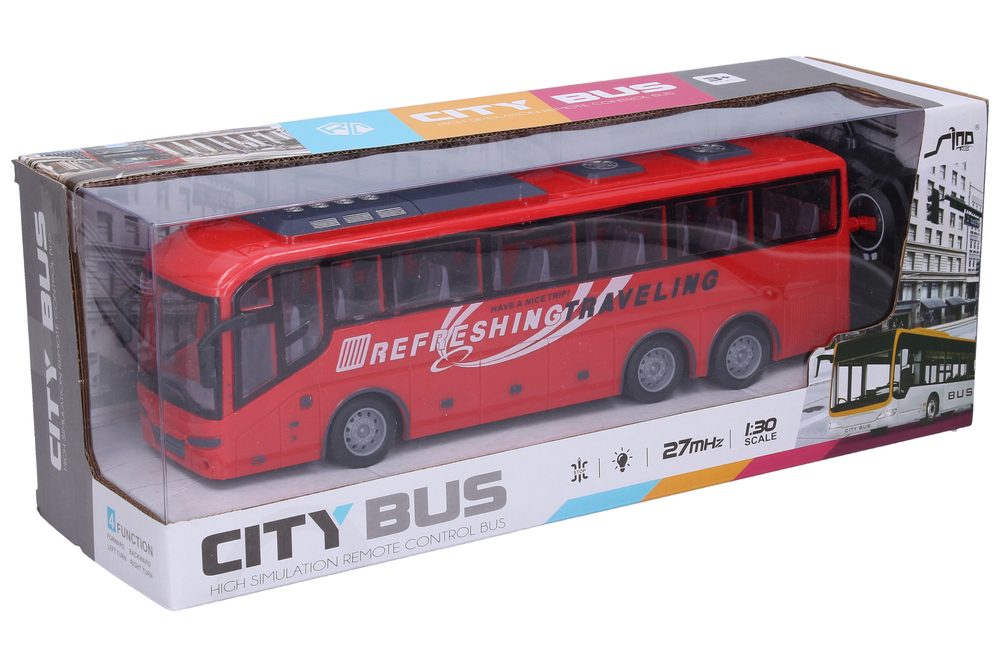 Zbernica diaľkového ovládania RC. Veľkosť 32 cm. Frekvencia 27 MHz. Svetelné efekty. Nabíjateľné batérie 4xAA pre zbernicu a nabíjací adaptér sú súčasťou balenia, 2xAA pre ovládač nie sú súčasťou balenia. RC diaľkové ovládanie RC zbernice. Veľkosť 32 cm. Frekvencia 27 MHz. Svetelné efekty. Nabíjacie batérie 4xAA pre zbernicu a nabíjací adaptér sú súčasťou balenia, 2xAA pre ovládač nie sú súčasťou balenia.