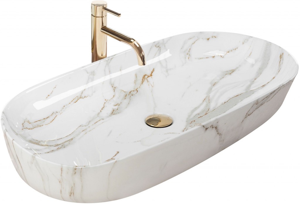 Moderné a jedinečné umývadlo na dosku s kamenným vzorom a neobvyklým tvarom. Umývadlo Rea Cleo vnesie do vašej kúpeľne eleganciu a môže sa stať jej jedinečným doplnkom. Vďaka svojmu lesku získa ľahkosť a originalitu. Umývadlo je prispôsobené na montáž na dosku alebo na skrinku. Bolo vyrobené z vysoko kvalitnej sanitárnej keramiky. Vďaka špeciálnej výrobnej fáze je odolné a ľahko sa čistí.Výpust, sifón a batérie nie sú súčasťou balenia. Ean: 5902557366941