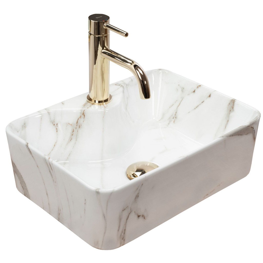 Predstavujeme vám krásne a moderné umývadlo, ktoré sa vyznačuje mimoriadnou funkčnosťou. Bol vyrobený zo 100% vysoko kvalitnej sanitárnej keramiky, ktorá zaručuje odolnosť po mnoho rokov používania. Výrobok je veľmi odolný voči nečistotám a poškriabaniu a ďalšou výhodou je ľahké udržiavanie celkovej čistoty vďaka jeho neobvyklému tvaru. Jednoduchá forma dokonale vyplní každý priestor kúpeľne pri zachovaní dokonalého vzhľadu a estetiky interiéru. Umývadlo skvele zapadne do moderných kúpeľní aj do klasických aj do retro.(GT) Ean: 5902557381296