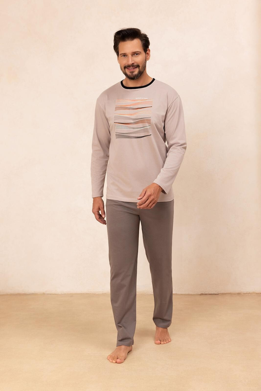 Pánske bavlnené pyžamo - tričko s dlhým rukávom - okrúhly výstrih - ozdobná potlač na hrudi - dlhé pevné nohavice Zloženie: 100 % bavlna