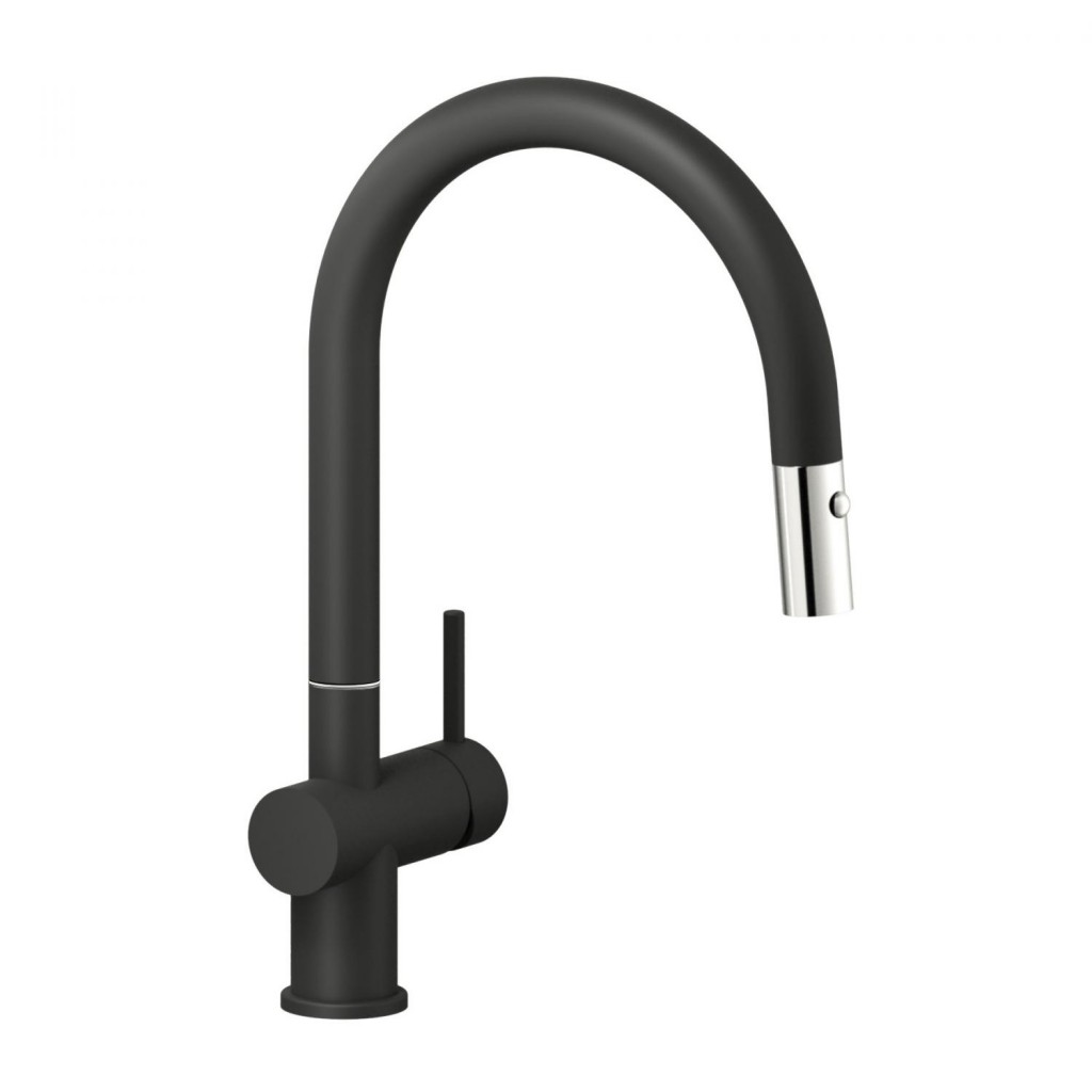 Drezová páková batéria, mosadz, povrch čierny/chróm, s odnímateľnou sprchou Materiál: mosadz Povrchová úprava: čierna / chróm Výsuvná sprcha Montáž: jednootvorová (priemer otvoru 35 mm) Výška batérie: 385 mm Dĺžka výtoku: 227 mm Otočná o 360 ° Uhol otvorenia páky: 90° Flexibilná pripojovacia hadica(GT) Ean: 8712465031667