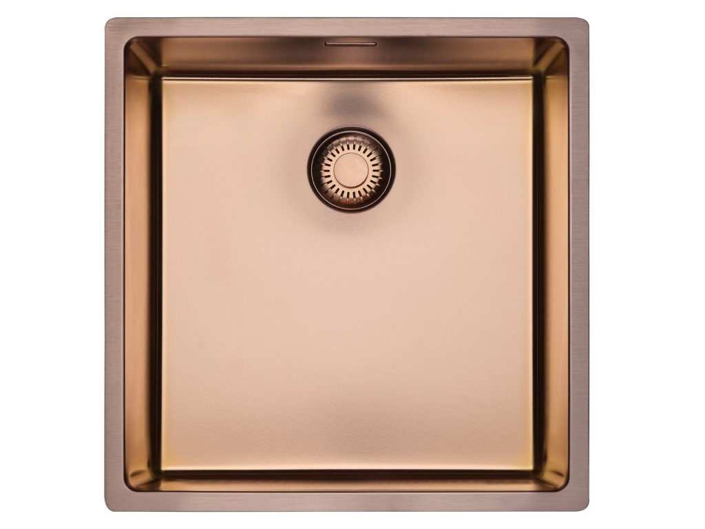 Nerezový drez 40x40 cm, povrch Copper Rose, montáž horná / do roviny / spodná Materiál: Nerezová oceľ 304 Hrúbka materiálu: 0,9 mm Povrchová úprava: PVD Copper Rose Montáž: horná / do roviny / spodná Pri spodnej montáži je nutné doobjednať úchytky R18996 Obsahuje odpadovú sadu bez excentra (ručné ovládanie výpustu) Sifón nie je súčasťou dodávky (možno doobjednať pod označením R18934) Vnútorné rozmery vaničky (ŠxHxV): 403 x 403 x 180 mm Celkové rozmery drezu (ŠxHxV): 440 x 440 x 180 mm Rádius: 10 mm Minimálna šírka skrinky: 500 mm(GT) Ean: 8712465035122