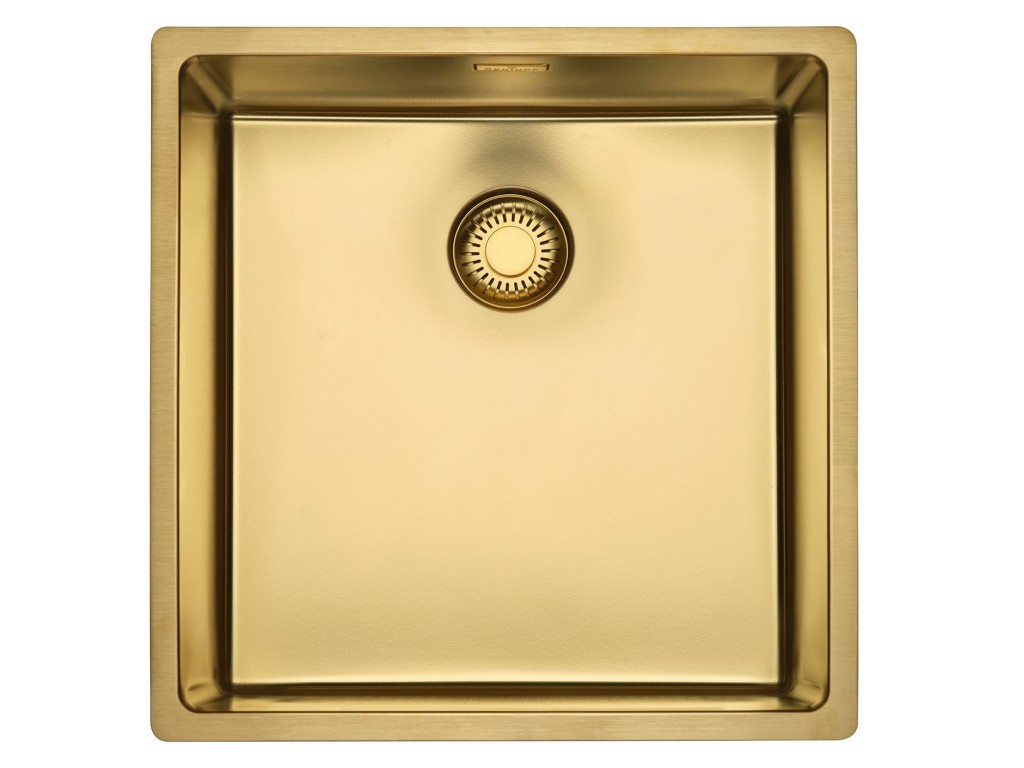 Nerezový drez 40x40 cm, povrch Gold Flax, montáž horná / do roviny / spodná Materiál: Nerezová oceľ 304 Hrúbka materiálu: 0,9 mm Povrchová úprava: PVD Gold Flax Montáž: horná / do roviny / spodná Pri spodnej montáži je nutné doobjednať úchytky R18996 Obsahuje odpadovú sadu bez excentra (ručné ovládanie výpustu) Sifón nie je súčasťou dodávky (možno doobjednať pod označením R18934) Vnútorné rozmery vaničky (ŠxHxV): 403 x 403 x 180 mm Celkové rozmery drezu (ŠxHxV): 440 x 440 x 180 mm Rádius: 10 mm Minimálna šírka skrinky: 500 mm(GT) Ean: 8712465035139