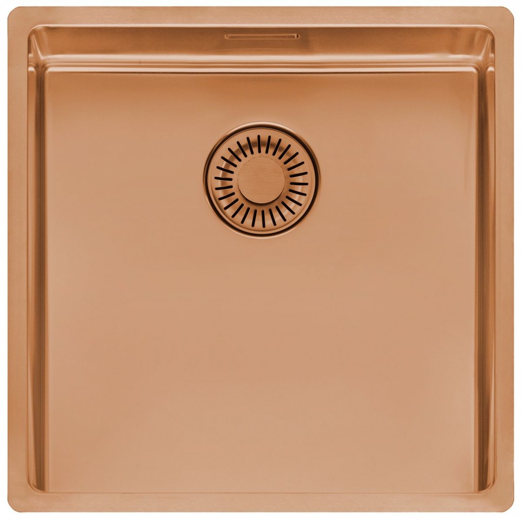 Nerezový drez 40x40 cm, povrch Copper / meď, montáž horná / do roviny / spodná Materiál: Nerezová oceľ 304 Hrúbka materiálu: 0,9 mm Povrchová úprava: PVD Copper / meď Montáž: horná / do roviny / spodná Pri spodnej montáži je nutné doobjednať úchytky R18996 Odpadové sitko Comfort pre lepší vzhľad a jednoduchšie čistenie Obsahuje odpadovú sadu bez excentra (ručné ovládanie výpustu) Sifón nie je súčasťou dodávky (možno doobjednať pod označením R18934) Vnútorné rozmery vaničky (ŠxHxV): 403 x 403 x 180 mm Celkové rozmery drezu (ŠxHxV): 440 x 440 x 180 mm Rádius: 10 mm Minimálna šírka skrinky: 500 mm(GT) Ean: 8712465038727