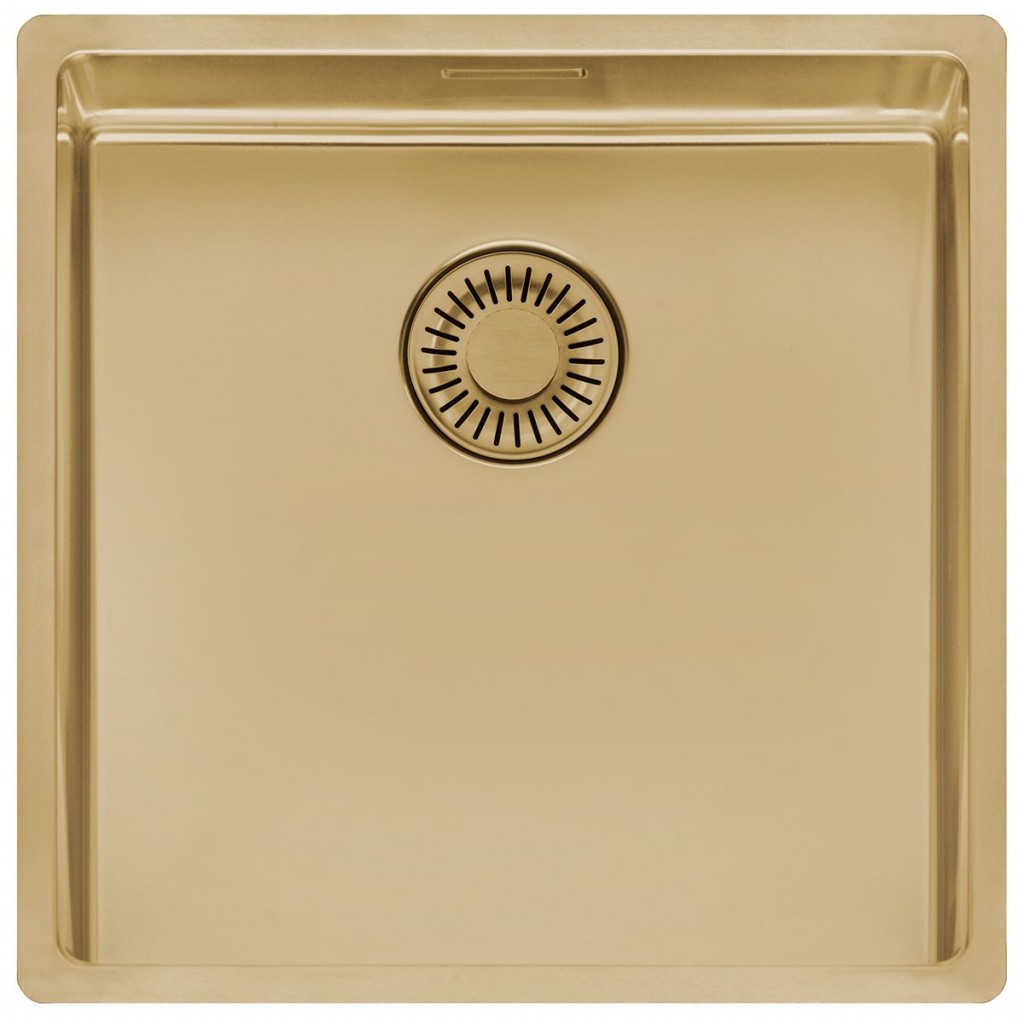 Nerezový drez 40x40 cm, povrch Gold / zlatý, montáž horná / do roviny / spodná Materiál: Nerezová oceľ 304 Hrúbka materiálu: 0,9 mm Povrchová úprava: PVD Gold / zlatá Montáž: horná / do roviny / spodná Pri spodnej montáži je nutné doobjednať úchytky R18996 Obsahuje odpadovú sadu bez excentra (ručné ovládanie výpustu) Sifón nie je súčasťou dodávky (možno doobjednať pod označením R18934) Vnútorné rozmery vaničky (ŠxHxV): 403 x 403 x 180 mm Celkové rozmery drezu (ŠxHxV): 440 x 440 x 180 mm Rádius: 10 mm Minimálna šírka skrinky: 500 mm(GT) Ean: 8712465038734