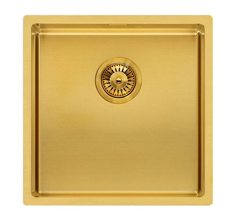 Nerezový drez 40x40 cm, povrch Gold / zlatý, montáž horná / do roviny / spodná Materiál: Nerezová oceľ 304 Hrúbka materiálu: 1,2 mm Povrchová úprava: PVD Gold / zlatá Montáž: horná / do roviny / spodná Pri spodnej montáži je nutné doobjednať úchytky R18996 Obsahuje odpadovú sadu bez excentra (ručné ovládanie výpustu) Sifón nie je súčasťou dodávky (možno doobjednať pod označením R18934) Vnútorné rozmery vaničky (ŠxHxV): 400 x 400 x 200 mm Celkové rozmery drezu (ŠxHxV): 440 x 440 x 200 mm Rádius: 10 mm Minimálna šírka skrinky: 500 mm(GT) Ean: 8712465030714