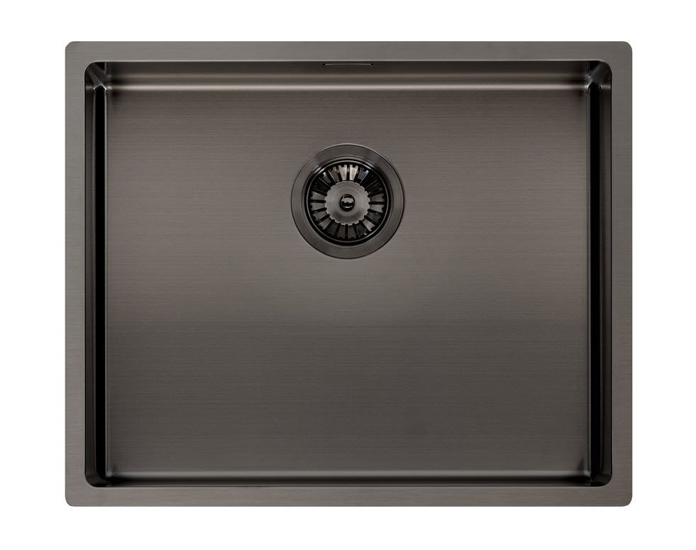 Nerezový drez 50x40 cm, povrch Gun Metal, montáž horná / do roviny / spodná Materiál: Nerezová oceľ 304 Hrúbka materiálu: 1,2 mm Povrchová úprava: PVD Gun Metal Montáž: horná / do roviny / spodná Pri spodnej montáži je nutné doobjednať úchytky R18996 Obsahuje odpadovú sadu bez excentra (ručné ovládanie výpustu) Sifón nie je súčasťou dodávky (možno doobjednať pod označením R18934) Vnútorné rozmery vaničky (ŠxHxV): 500 x 400 x 200 mm Celkové rozmery drezu (ŠxHxV): 540 x 440 x 200 mm Rádius: 10 mm Minimálna šírka skrinky: 600 mm(GT) Ean: 8712465030721