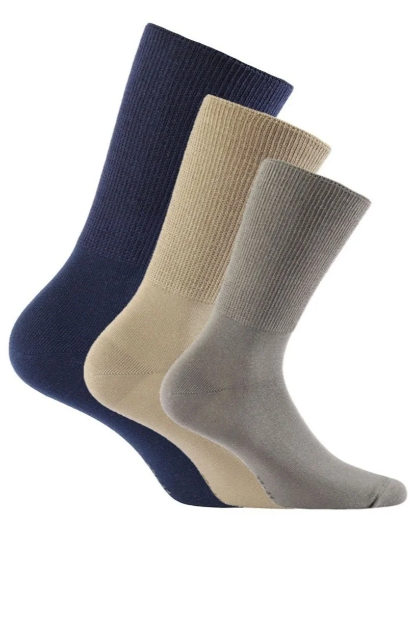 Ponožky z mäkkej bavlny, ktorá jemne priľne k chodidlu. Absencia švov a ploché švy zaisťujú vysoký komfort nosenia a pohodu. Ideálne pre ľudí s poruchami krvného obehu, opuchnutými nohami..