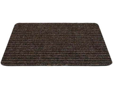 Hnedá rohožka o rozmere 40x60 cm v praktickom dizajne jemného prúžku s drážkami spoľahlivo odstráni nečistoty a vlhkosť z obuvi.