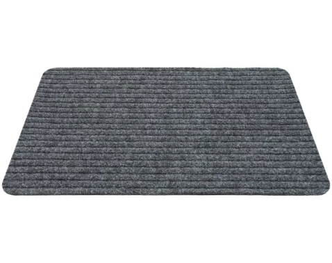 Šedá rohožka o rozmere 40x60 cm v praktickom dizajne jemného prúžku s drážkami spoľahlivo odstráni nečistoty a vlhkosť z obuvi.
