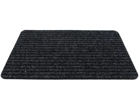 Antracitová rohožka o rozmere 40x60 cm v praktickom dizajne jemného prúžku s drážkami spoľahlivo odstráni nečistoty a vlhkosť z obuvi.