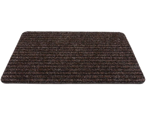 Hnedá rohožka o rozmere 40x60 cm v praktickom dizajne jemného prúžku s drážkami spoľahlivo odstráni nečistoty a vlhkosť z obuvi.
