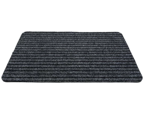 Šedá rohožka o rozmere 40x60 cm v praktickom dizajne jemného prúžku s drážkami spoľahlivo odstráni nečistoty a vlhkosť z obuvi.