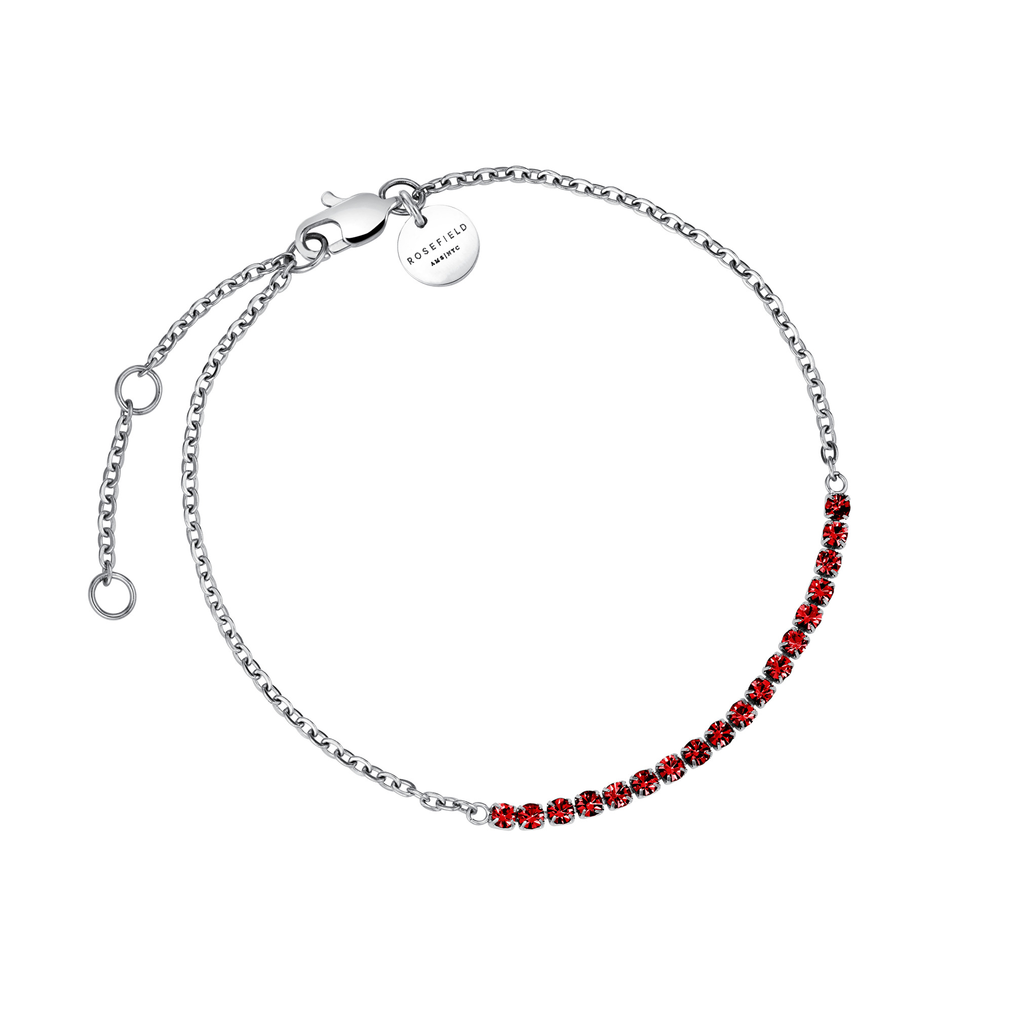Rosefield Pôvabný oceľový náramok s červenými kryštálmi Tennis JBTSS-J913