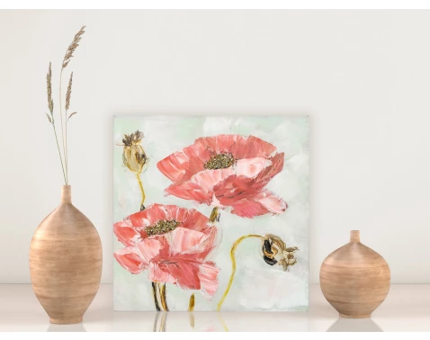 Ručne maľovaný obraz na stenu sa stane jedinečnou dekoráciou vo vašej domácnosti. Umelecký originál s prírodným motívom vlčích makov, zútulni každý interiér. Rozmer 30x30 cm.