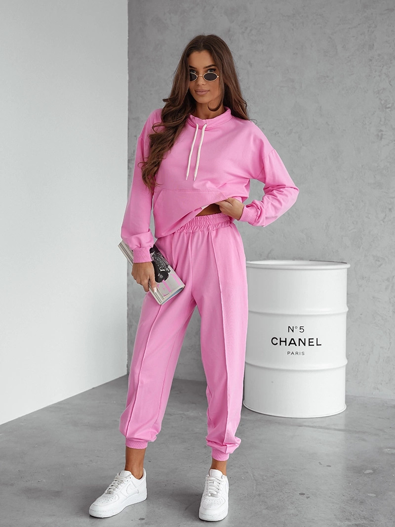 Domov Oblečenie a móda Dámske oblečenie Dámske blúzky a košele Ružová dámska tepláková súprava - mikina so stojačikom a nohavice (82162) odstíny růžové L (40)