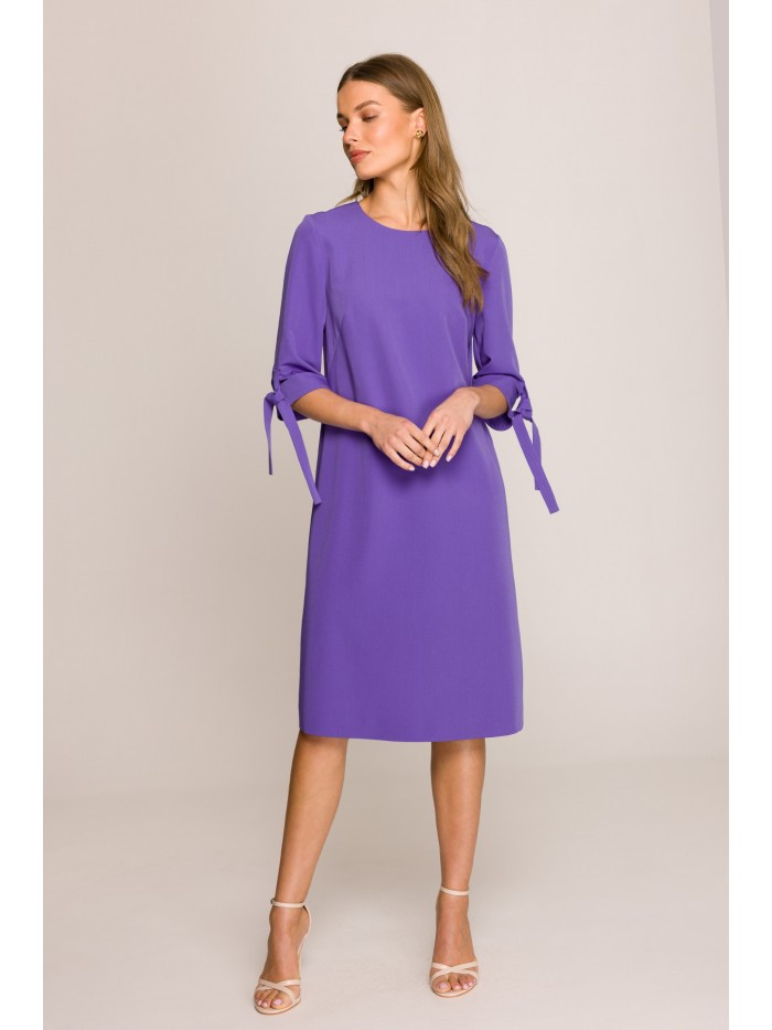 S393 Šaty áčkového strihu so zaväzovacími rukávmi - fialové EU S