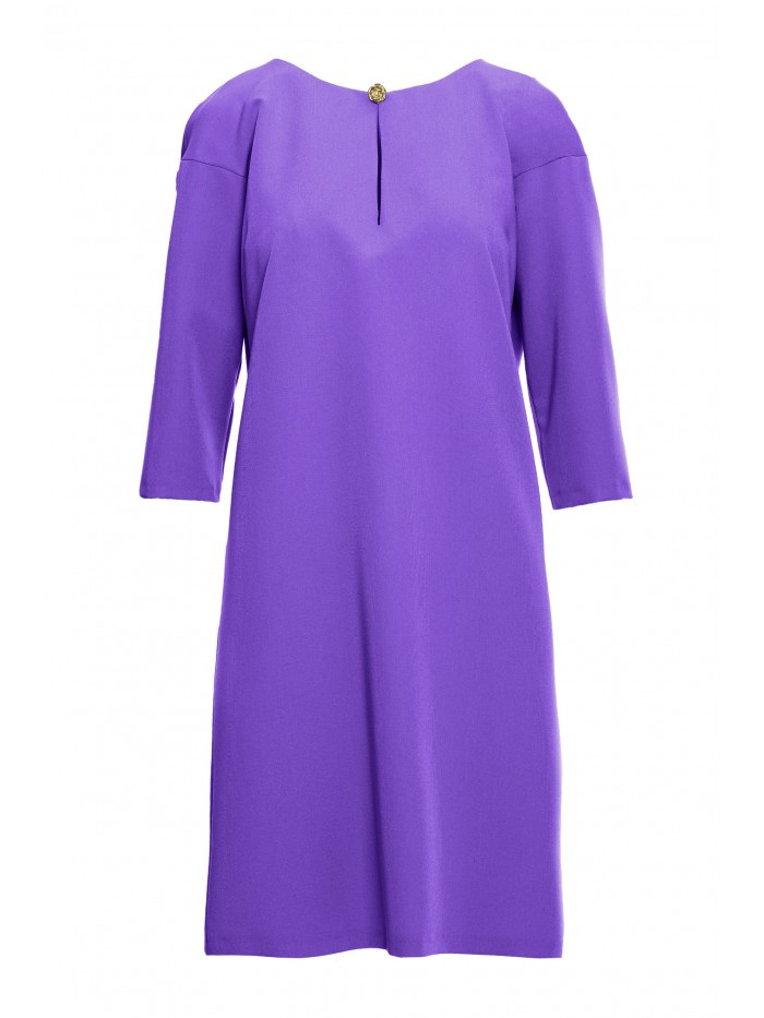 S394 Uvoľnené šaty s výstrihom s kľúčovou dierkou - fialové EU L