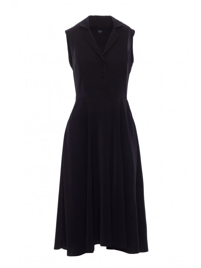 materiál: 95% polyester 5% elastan Materiál: hladká tkanina s jemným leskom PODROBNOSTI O PRODUKTE Výstrih: hlboký véčkový výstrih s klasickým golierom Rukávy: bez rukávov Zapínanie: skrytý bočný zips, gombík Vrecká: bočné vrecká Podšívka: žiadna Model: S409 Navrhnutý a vyrobený v Poľsku Modelka je vysoká 170 cm a má na sebe veľkosť S STYLE A STRIH Strih: vypasovaný top s rozšírenou sukňou Tvar: vypasovaný strih, vymedzený pásVEĽKOSŤSMLXLA36 cm37 cm38 cm39cmB46cm48,5cm51cm53,5cmC36cm38,5cm41cm43,5cmD62cm64,5cm67cm69,5cmE113cm116cm119cm122cm