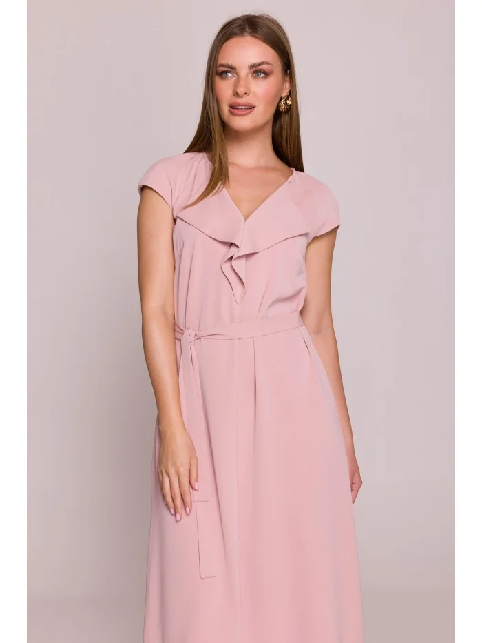 Domov Oblečenie a móda Dámske oblečenie Dámske šaty S411 Šaty bez rukávov s volánovým výstrihom - púdrové EU M