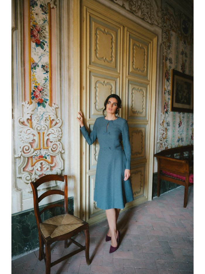 materiál: 97% polyester 3% elastan Textília: hladká tkaná tkanina s melanžovou štruktúrou PODROBNOSTI O PRODUKTE Výstrih: okrúhly výstrih s rozparkom vpredu Rukávy: dlhé Vrecká: vrecká v bočnom šve Detail: ozdobné mašle v strede predného dielu Zapínanie: skrytý zips vzadu Podšívka: žiadna Model: S413 Navrhnuté a vyrobené v Poľsku Modelka je vysoká 174 cm a nosí veľkosť S STYLE A STRIH Strih: trapézové šaty s ozdobnými mašľami vpredu Tvar: uvoľnená áčková línia, voľnejšie na bokoch Dĺžka: pod kolenáVEĽKOSŤSMLXLXXLA38 cm39 cm40 cm41cm42cmB46cm48,5cm51cm53,5cm56cmC37cm39,5cm42cm44,5cm47cmD50cm52,5cm55cm57,5cm60cmE58cm58cm59cm59cm59,5cmF110cm111,5cm113cm114,5cm116cm