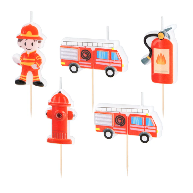 Veselá sada sviečok s hasičskou témou — štýlová dekorácia pre detské torty, ktorá ozvláštni každú oslavu.