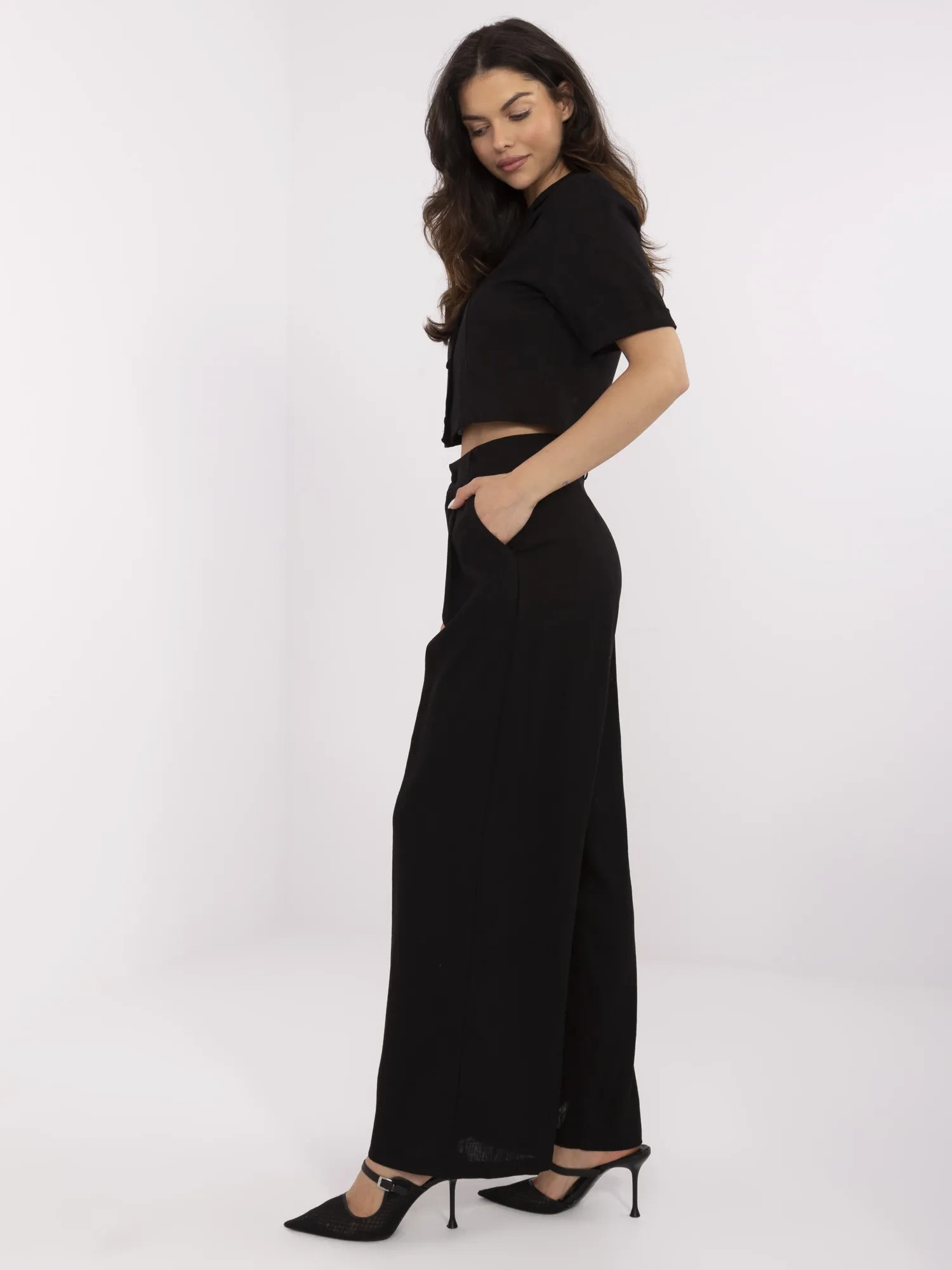 Modelka má na sebe veľkosť S/M. Rozmery modelky: výška 173 cm, prsia 89 cm, pás 65 cm, boky 91 cm. Rozmery trička vo veľkosti S/M merané na plocho: šírka v podpazuší - 47 cm, dĺžka rukáva - 24 cm (od švu), celková dĺžka - 48 cm. Rozmery nohavíc vo veľkosti S/M: šírka v páse - 34 cm, výška v páse - 31 cm, šírka v bokoch - 33 cm, celková dĺžka - 106 cm.Veľkosť alt.VýškaObvod hrudníkaVonkajšia dĺžka rukávovVonkajšia dĺžka rukávovM/L38/40162-17486-9161-6351-53S/M36/38160-17282-8659-6149-51