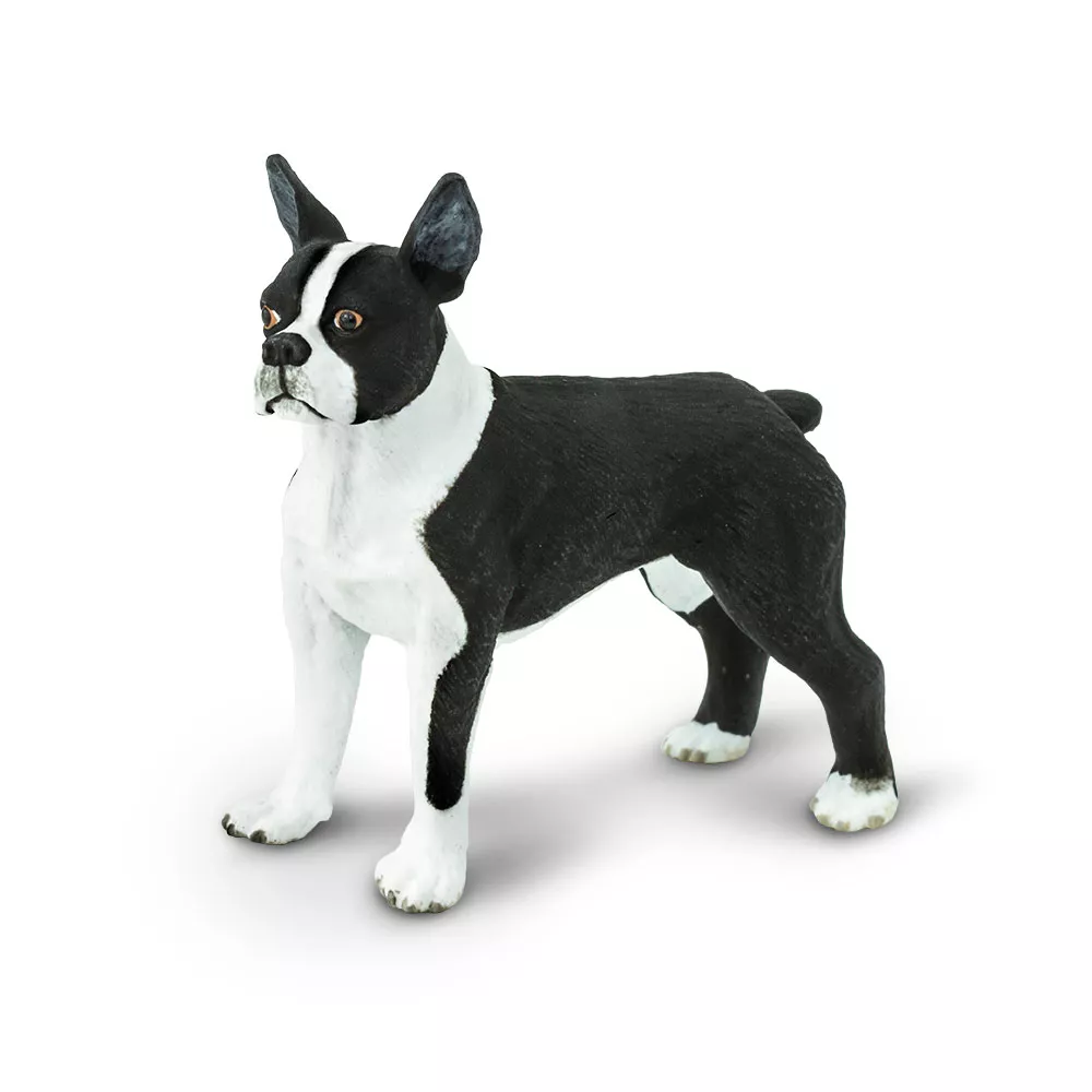 Plemeno psa pôvodom z Bostonu v USA, vyšľachtené na psie zápasy. Bostonské teriéry sú malí psi s pevnou stavbou tela, veľkou inteligenciou, bystrí, priateľskí a maznaví. Táto figúrka predstavuje typické znaky plemena v kompaktnom prevedení.