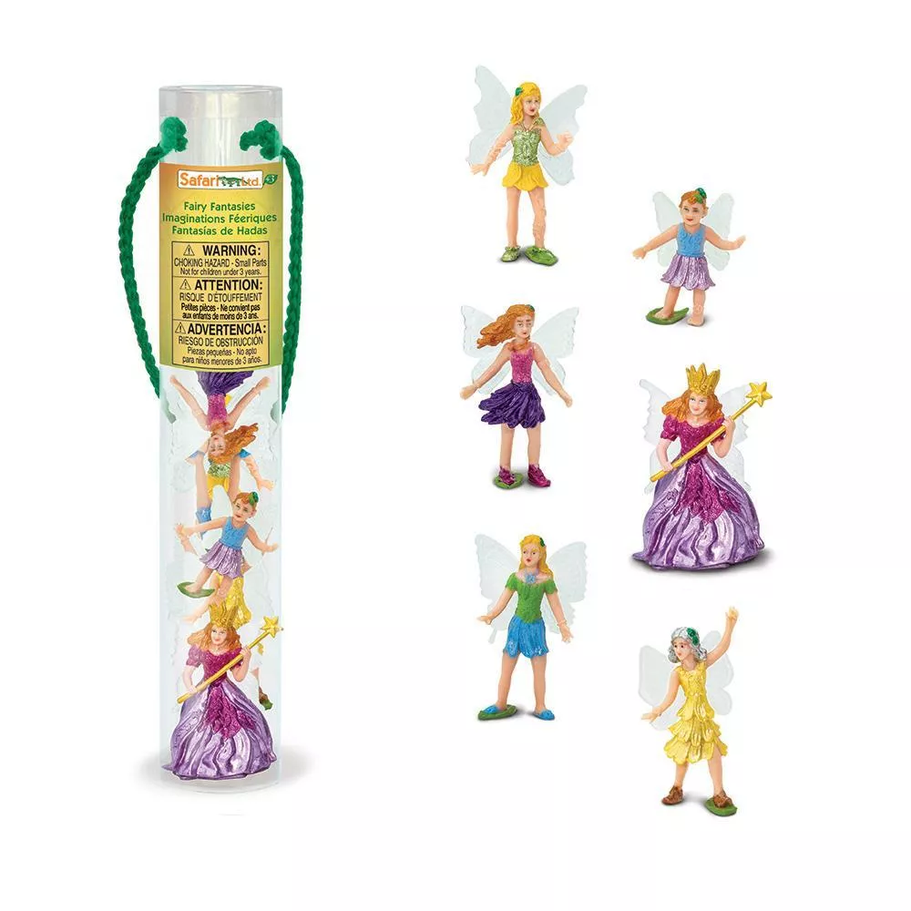 Set obsahuje tuba so šiestimi ručne maľovanými figúrkami zobrazujúcimi víly z rozprávok. Výrobok kombinuje dekoratívne prevedenie s ohľadom na bezpečnosť a vhodnosť pre deti od 3 rokov.