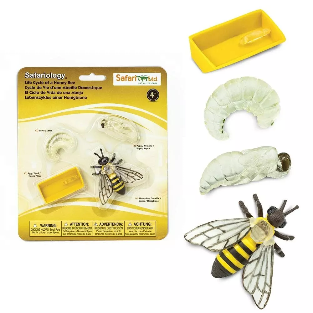 Súbor realistických replík znázorňujúcich štyri štádiá vývoja včely: vajíčko, larva, kukla a dospelá včela. Modely sú vyrobené s dôrazom na vernosť tvarov a detailov, vhodné na pozorovanie a vzdelávanie detí.