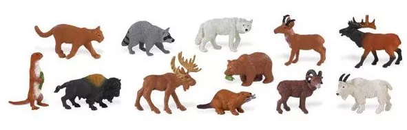 Spoznajte cicavce, ktoré sa potulujú severoamerickými lesmi a horami. Vak obsahuje 48 miniatúrnych, ručne maľovaných replík týchto druhov.