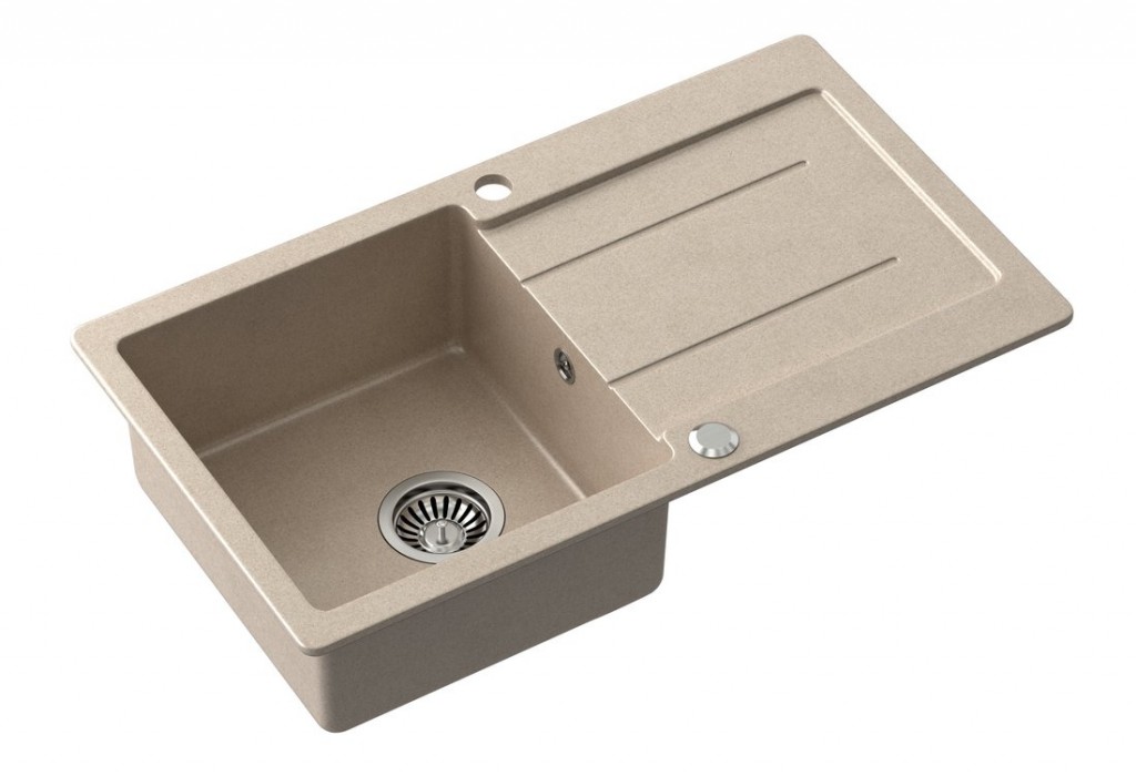 Granit Špeciálne zloženie materiálu použitého na výrobu (kamenná drvina, napr. kremičitého piesku - žuly a polymérovej živice) a jeho vysoká hustota garantuje bezpečné používanie výrobku, a preto sú granitové drezy tak obľúbené. Na granitovom dreze nie sú vidieť zaschnuté kvapky, je odolný voči škvrnám a nestráca farbu. Povrch je odolný proti poškriabaniu a odoláva teplotám až do 180 °C. Pri ich údržbe sa používajú obvyklé čistiace prostriedky alebo prostriedky na riad s jemným abrazívom. Výhodou je rozmanitá farebná ponuka. Inštalácie: Horná montáž Drez je usadený na pracovnú dosku a hranou ju prevyšuje. Ean: 8590913945038