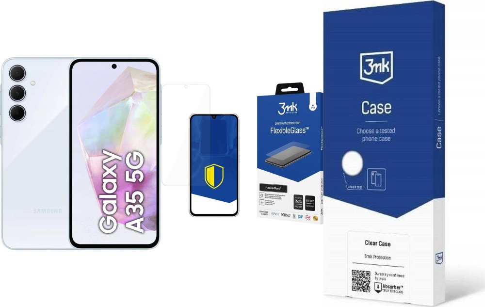 Samsung Galaxy A35 6/128 GB Niebieski (SM-A356BLBBEUE) + FlexibleGlass + Etui Clear Case