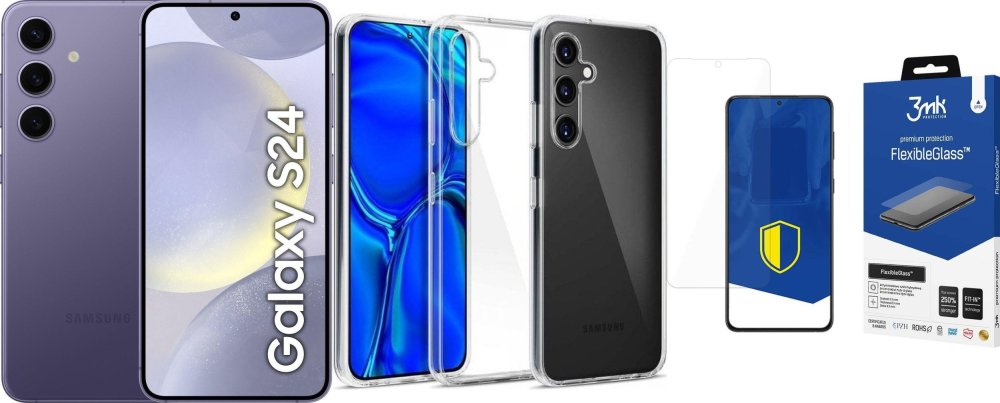 Samsung Galaxy S24 5G 8/256GB Fioletowy (SM-S921BZV) + FlexibleGlass + Etui Clear Case