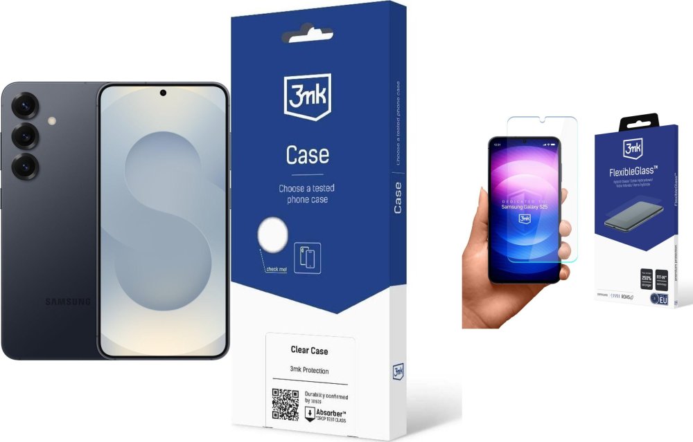Samsung Galaxy S25 5G 12/128GB Czarny (SM-S931BDK) + FlexibleGlass + Etui Clear Case