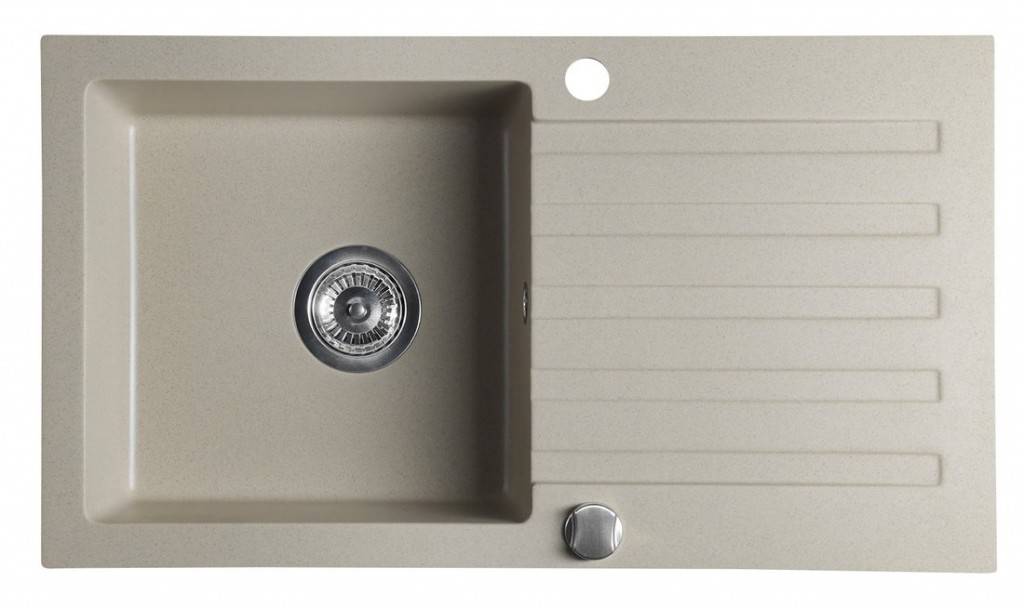 Granit Špeciálne zloženie materiálu použitého na výrobu (kamenná drvina, napr. kremičitého piesku - žuly a polymérovej živice) a jeho vysoká hustota garantuje bezpečné používanie výrobku, a preto sú granitové drezy tak obľúbené. Na granitovom dreze nie sú vidieť zaschnuté kvapky, je odolný voči škvrnám a nestráca farbu. Povrch je odolný proti poškriabaniu a odoláva teplotám až do 180 °C. Pri ich údržbe sa používajú obvyklé čistiace prostriedky alebo prostriedky na riad s jemným abrazívom. Výhodou je rozmanitá farebná ponuka. Inštalácie: Horná montáž Drez je usadený na pracovnú dosku a hranou ju prevyšuje. Ean: 8590913906770
