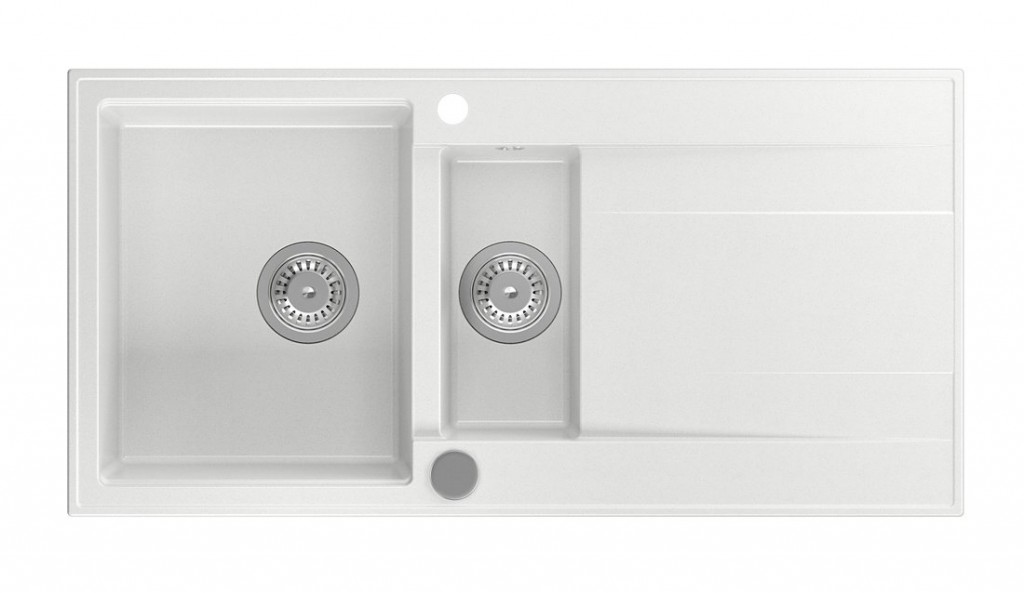 Granit Špeciálne zloženie materiálu použitého na výrobu (kamenná drvina, napr. kremičitého piesku - žuly a polymérovej živice) a jeho vysoká hustota garantuje bezpečné používanie výrobku, a preto sú granitové drezy tak obľúbené. Na granitovom dreze nie sú vidieť zaschnuté kvapky, je odolný voči škvrnám a nestráca farbu. Povrch je odolný proti poškriabaniu a odoláva teplotám až do 180 °C. Pri ich údržbe sa používajú obvyklé čistiace prostriedky alebo prostriedky na riad s jemným abrazívom. Výhodou je rozmanitá farebná ponuka. Inštalácie: Horná montáž Drez je usadený na pracovnú dosku a hranou ju prevyšuje. Ean: 8590913906855