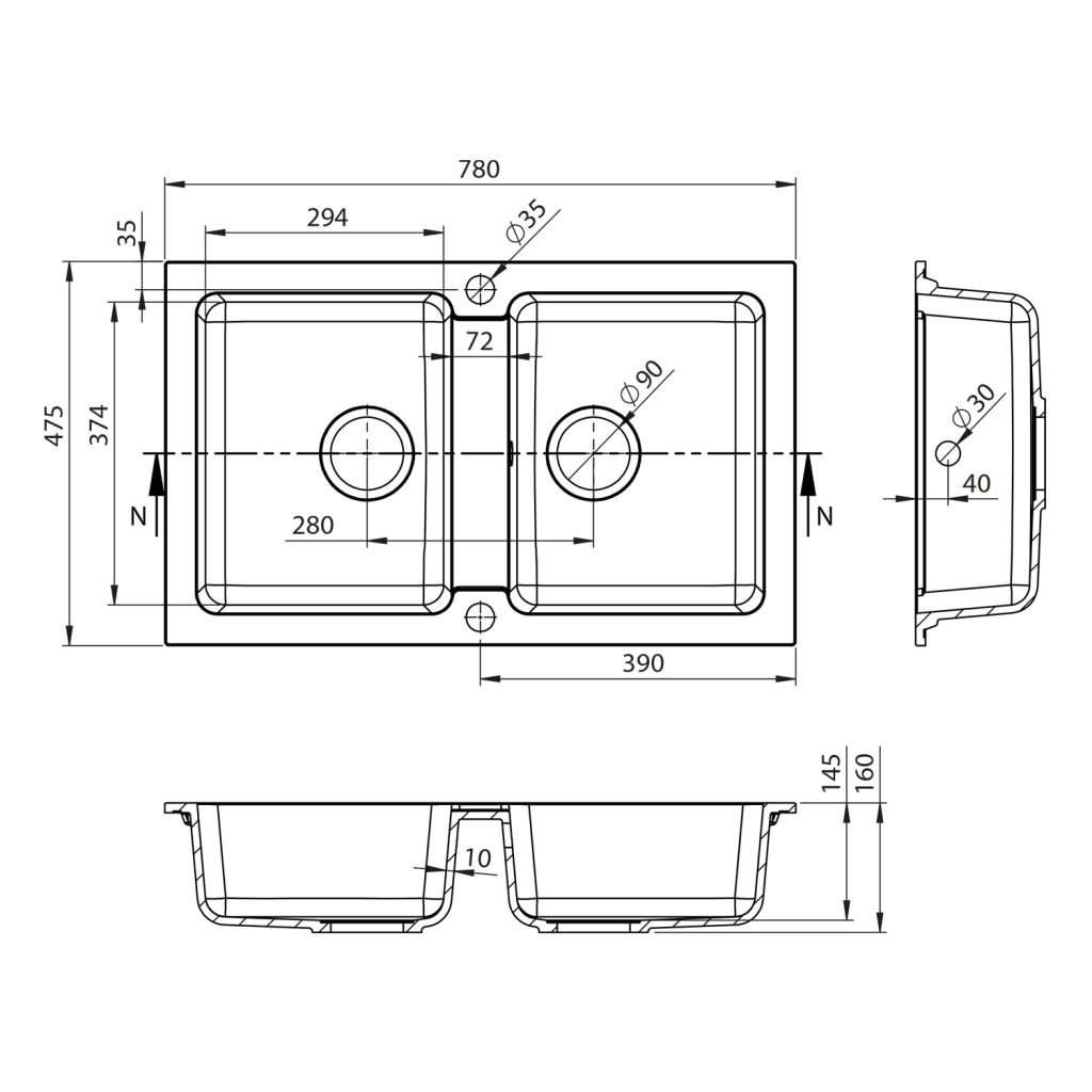Granit Špeciálne zloženie materiálu použitého na výrobu (kamenná drvina, napr. kremičitého piesku - žuly a polymérovej živice) a jeho vysoká hustota garantuje bezpečné používanie výrobku, a preto sú granitové drezy tak obľúbené. Na granitovom dreze nie sú vidieť zaschnuté kvapky, je odolný voči škvrnám a nestráca farbu. Povrch je odolný proti poškriabaniu a odoláva teplotám až do 180 °C. Pri ich údržbe sa používajú obvyklé čistiace prostriedky alebo prostriedky na riad s jemným abrazívom. Výhodou je rozmanitá farebná ponuka. Inštalácie: Horná montáž Drez je usadený na pracovnú dosku a hranou ju prevyšuje. Ean: 8590913906800