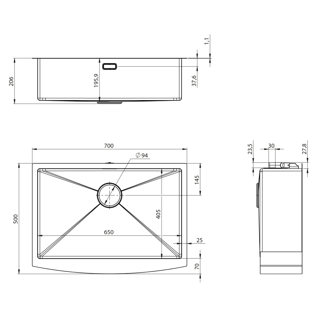 MEXEN/S MEXEN/S - Kevin granitový drez 1 s odkvapkávačom 586 x 458 mm, čierna/strieborný metalik, + čierny sifón 6517581005-73-B