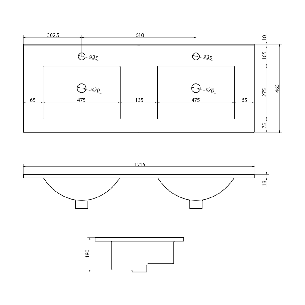 Kvalitní SAPHO - SLIM keramické dvojumývadlo 120x46,5cm, biela 1601-120 za 307.5 €.