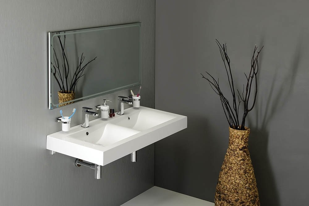 Farba LED: Denná biela Na určenie farby svetla sa používa pojem „teplota chromatičnosti“. Jej hodnoty sa udávajú v jednotkách Kelvinov (K). Denná biela je farba vyžarovaného svetla v rozmedzí 4000 – 5000 K. Toto svetlo je pocitovo neutrálne, najviac pripomína denné svetlo. Neskresľuje vnímanie farieb osvetlených predmetov, preto je vhodné do obytných priestorov, kuchýň a kúpeľní. Ochrana proti korózii Zrkadlo s ochranou proti korózii (neobsahuje meď). Zrkadlá GEMINI sú vybavené LED pásikmi, ktoré osvetľujú kúpeľňu jasným homogénnym svetlom. Ich dlhá životnosť a nízka spotreba sú hlavnými výhodami oproti klasickej žiarivke. Svetlo vyžarované cez vypieskovanú čelnú časť dáva kúpeľni príjemne jemné osvetlenie. Technické parametre pre zrkadlá s LED pásikom: Príkon: 20 W/m Bez vypínača - zrkadlo sa pripojí na externý vypínač Chip: SMD 3528 LED Epistar Počet LED: 96/m CRI (Ra): >80 Napájacie napätie: 12 V/DC Životnost: 30.000 h Vyžarovací uhol: 120° Pracovná teplota: -20 °C až +50 °C Šírka pásika: 8 mm LED driver 230 V/12 V, IP44 Ean: 8590913826009