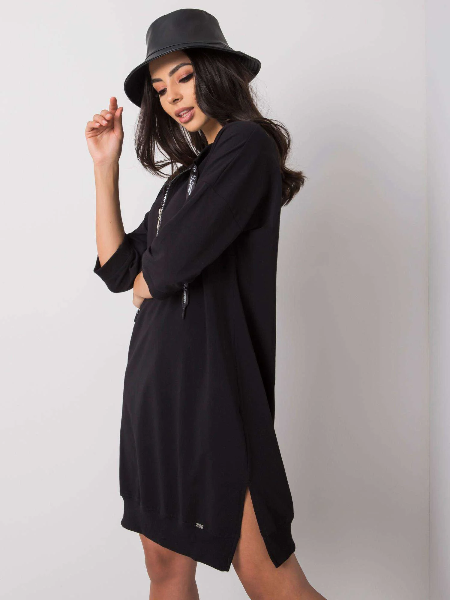 Čierne bavlnené šaty na zips . zloženie látky: 90% bavlna, 10% elastan spôsob prania: pranie v práčke na 30 °C Modelka má na sebe veľkosť S/M. Rozmery modelky: výška 175 cm, poprsie 84 cm, pás 61 cm, boky 91 cm. Rozmery šiat vo veľkosti S/M merané na plocho: šírka v podpazuší - 50 cm, celková dĺžka - 88 cm, dĺžka rukáva - 41 cm
