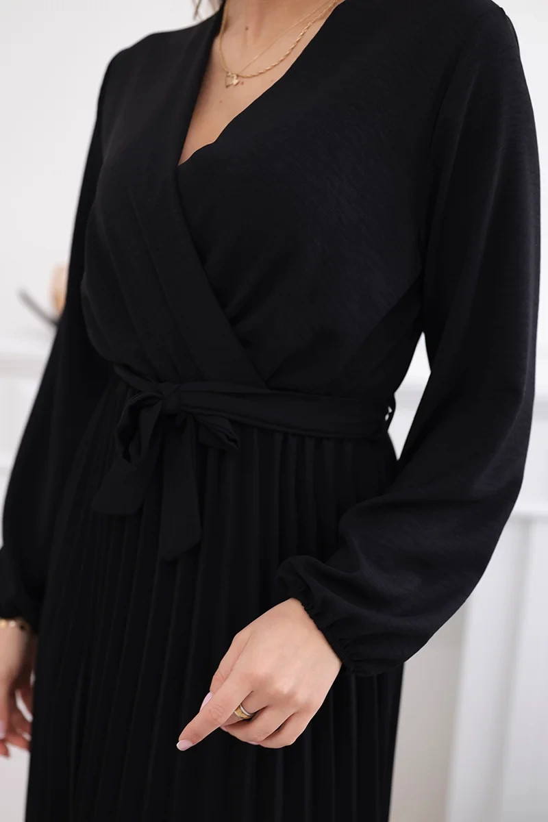 Domov Oblečenie a móda Dámske oblečenie Dámske šaty Šaty s viazaným plisovaným lemom čierne UNI