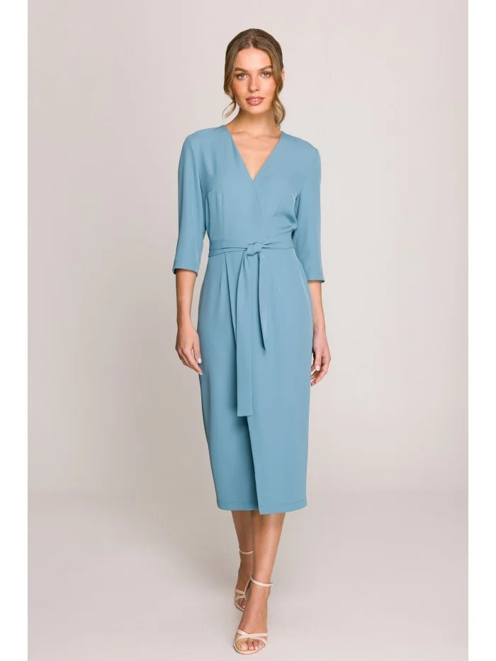 PODROBNOSTI O PRODUKTE: tkaná látka midi šaty bez rukávov zavinovací dizajn výstrih do V čiastočne podšitý top trojštvrťové rukávy čiastočne elastický pások opasok na zaväzovanie skrytý zips na chrbte naša modelka meria 175 cm a nosí veľkosť S navrhnuté a vyrobené v Poľsku Materiálové zloženie: 95 % polyester 5 % elastan VEĽKOSŤ S M L XL XXL A 39 cm 40 cm 41cm 42cm 43cm B 48cm 50,5cm 53cm 55,5cm 58cm C 34cm 36cm 38cm 40cm 42cm D 48cm 50,5cm 53cm 55,5cm 58cm E 41cm 41,5cm 42cm 42,5cm 43cm F 118cm 119cm 120cm 121cm 122cm